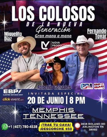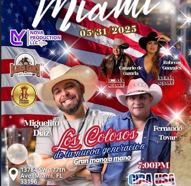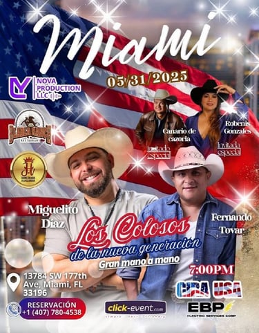 Prepárate para sentir la energía de nuestras giras con artistas como Miguelito Díaz y Robenis González, llevando el folklore venezolano a cada rincón de Estados Unidos.